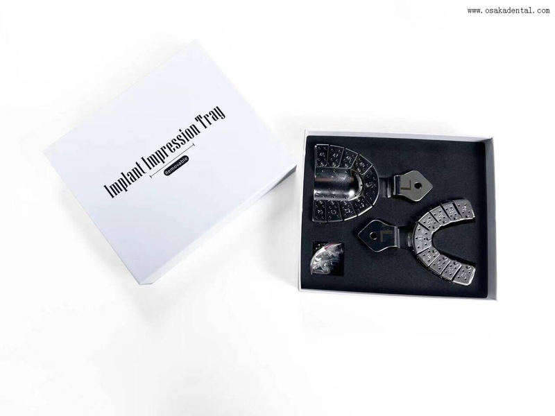 صواني انطباع زراعة الأسنان الاحترافية في صندوق مصنوع من صواني انطباع الأسنان المصنوعة من الفولاذ المقاوم للصدأ عالي الجودة