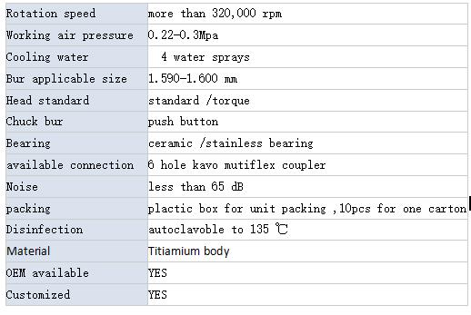 أنت هنا: مسكن » منتجات » قبضة الأسنان » قبضة الأسنان عالية السرعة » نوع جديد من الألياف الجسم التيتانيوم البصرية قبضة عالية السرعة