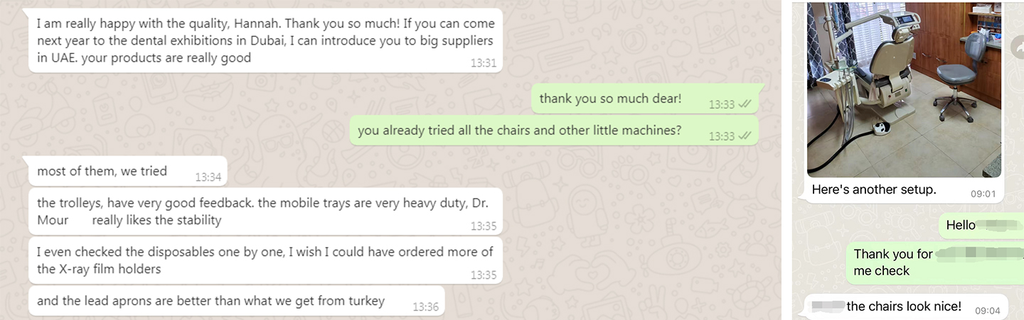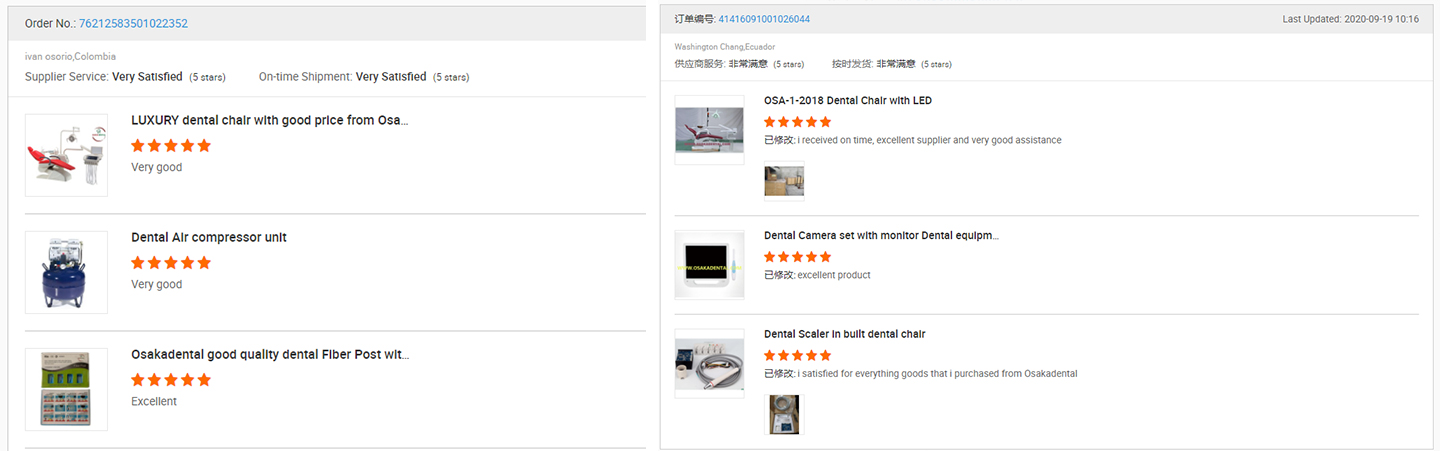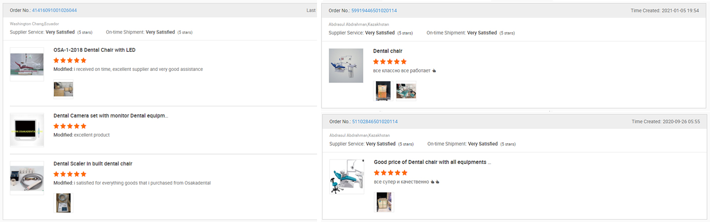 العديد من العملاء عند طلب كراسي الأسنان لدينا ، سوف يطلبون العديد من المعدات الأخرى منا مثل قطار الأسنان ، وملفات أسنان الأسنان ، وقطع غيار وحدة الأسنان ، وضواغط الأسنان والشفارات ، وسنساعدهم في وضع داخل كل صندوق كرسي ، لتوفير تكلفتها. في بعض الأحيان يمكننا تقديم خدمة من الباب إلى الباب لعملائنا.